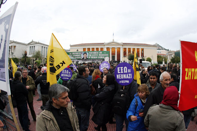 Πάντως, επί ποδός ήταν η ΕΛ.ΑΣ. για τη συγκέντρωση διαμαρτυρίας που είχε προγραμματιστεί για τις 19.00 στο κέντρο της Αθήνας από τους οπαδούς της Χρυσής Αυγής και την αντισυγκέντρωση που πραγματοποίησαν ομάδες από τον αντιεξουσιαστικό και αντιφασιστικό χώρο.