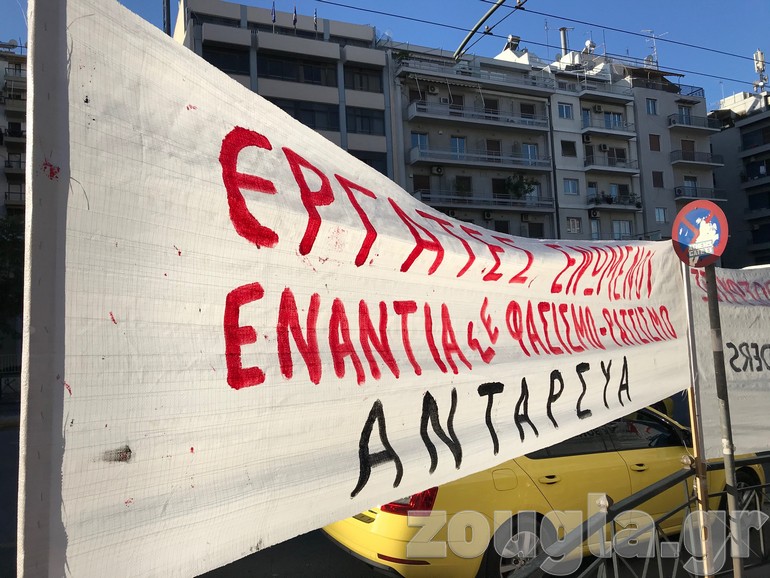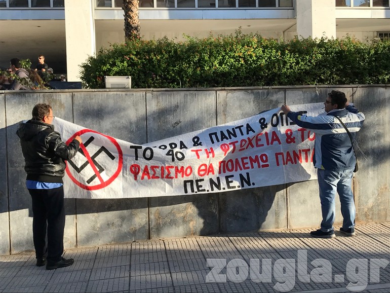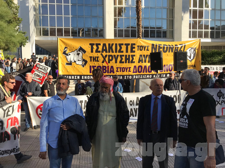 Την ίδια ώρα, αντιφασιστικές οργανώσεις και μέλη του ΠΑΜΕ πραγματοποίησαν συγκέντρωση έξω από το Εφετείο, παρουσία δυνάμεων των ΜΑΤ. Η κυκλοφορία στην κάθοδο της λεωφόρου Αλεξάνδρας διακόπηκε για περίπου μία ώρα.