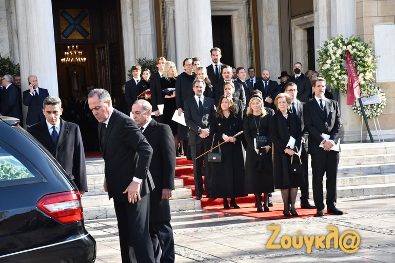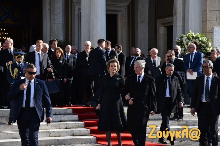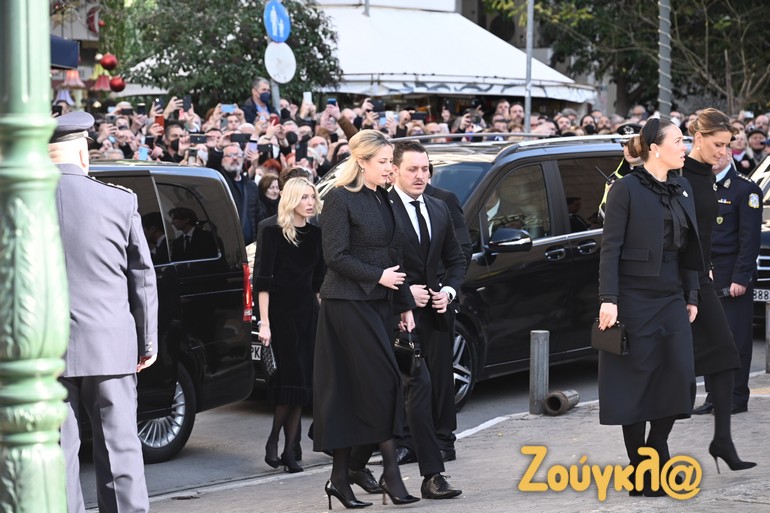 Λίγο μετά τις 11.00 ξεκίνησε η προσέλευση των επίσημων προσκεκλημένων. Στη Μητρόπολη έφτασε πρώτος ο επίτιμος βασιλιάς της Ισπανίας, Χουάν Κάρλος, και η βασιλομήτωρ Σοφία, αδερφή του εκλιπόντος Κωνσταντίνου. Παρούσα και η πριγκίπισσα Άννα, εκπρόσωπος του βασιλικής οικογένειας της Βρετανίας. Στη συνέχεια αφίχθη το βασιλικό ζεύγος της Ολλανδίας, ο βασιλιάς Γουλιέλμος Αλέξανδρος και η βασίλισσα Μάξιμα. Ακολούθησε ο πρίγκιπας Αλβέρτος του Μονακό, ο βασιλιάς Φίλιππος του Βελγίου και η βασίλισσα Ματθίλδη και ακολούθησε το βασιλικό ζεύγος της Ισπανίας, Φίλιππος και Λετίθια. Ακολούθως έφτασαν στη Μητρόπολη ο πρίγκιπας διάδοχος της Νορβηγίας Χάακον και η σύζυγός του Μέτε-Μάριτ.