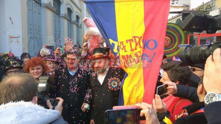 Στην συνέχεια οι καρναβαλιστές παρέδωσαν στον δήμαρχο το καρναβαλικό λάβαρο, το οποίο θα παραμείνει στο δημαρχείο μέχρι το τέλος των εκδηλώσεων, στις 26 Φεβρουαρίου.