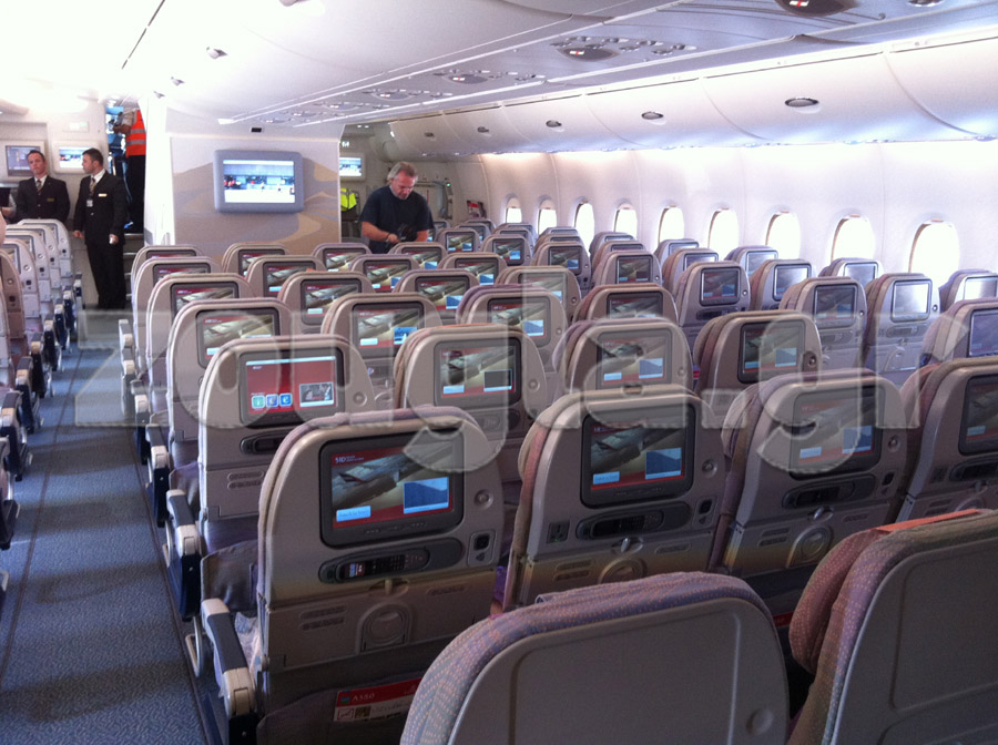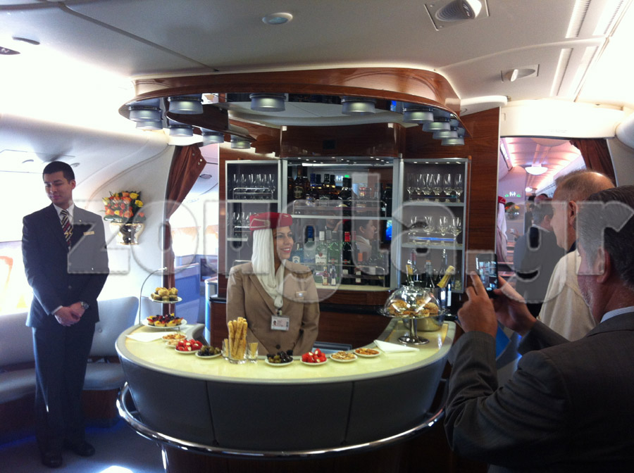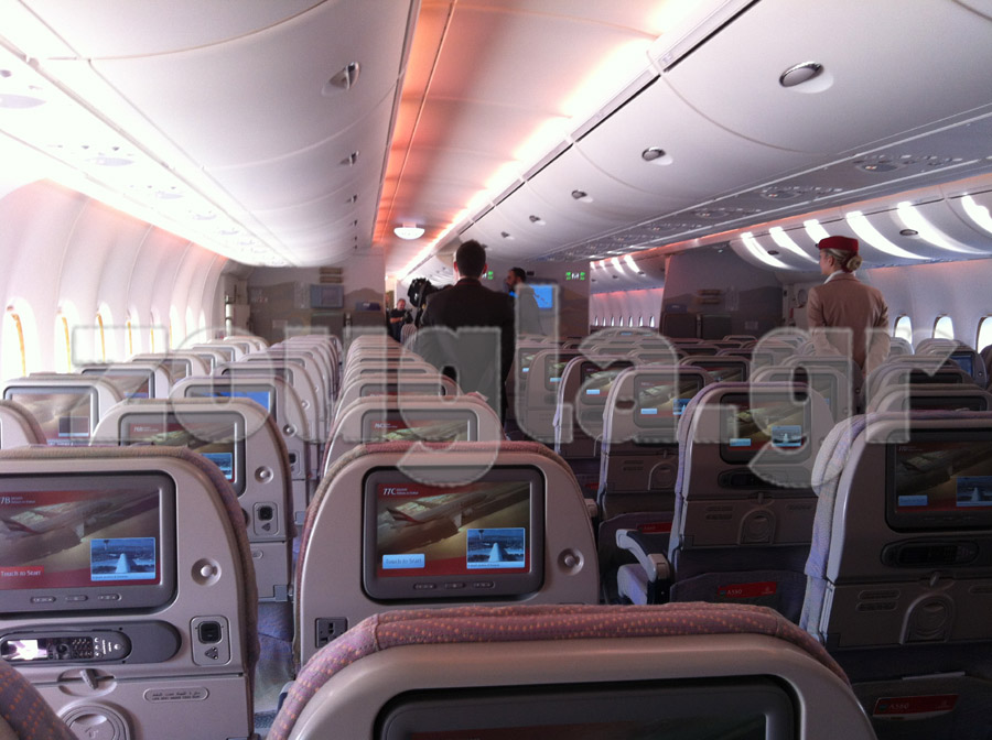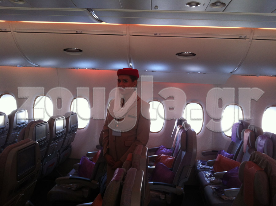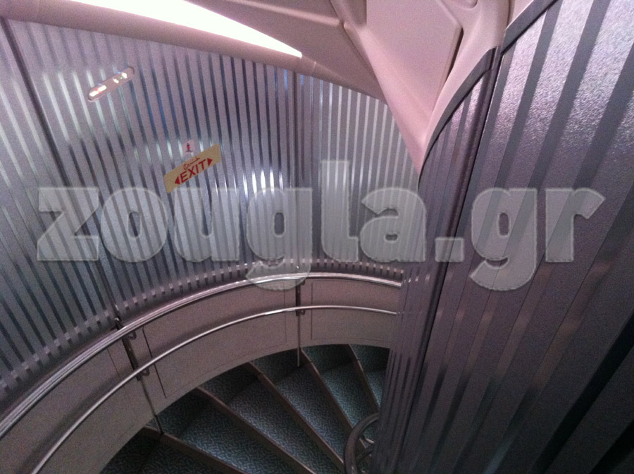 Εκεί ήταν και η zougla.gr που ξεναγήθηκε στους διαδρόμους του Α380. Να σημειώσουμε ότι πρόκειται για ένα διώροφο (!) αεροσκάφος το οποίο είναι εφοδιασμένο με όλες τις ανέσεις, τόσο όσον αφορά τα καθίσματα αλλά και όσον αφορά την ποιότητα του ταξιδιού. Όπως διαπιστώσαμε το εν λόγω αεροσκάφος που μπορεί να φιλοξενήσει συνολικά 517 επιβάτες ( 427 στην οικονομική θέση, 76 στη διακεκριμένη και 14 στην πρώτη θέση) είναι ένα πολυτελές ξενοδοχείο που δεν θυμίζει σε τίποτα ένα κλασσικό αεροπλάνο και ιδίως όταν βρίσκεσαι στον.. πάνω όροφο.
