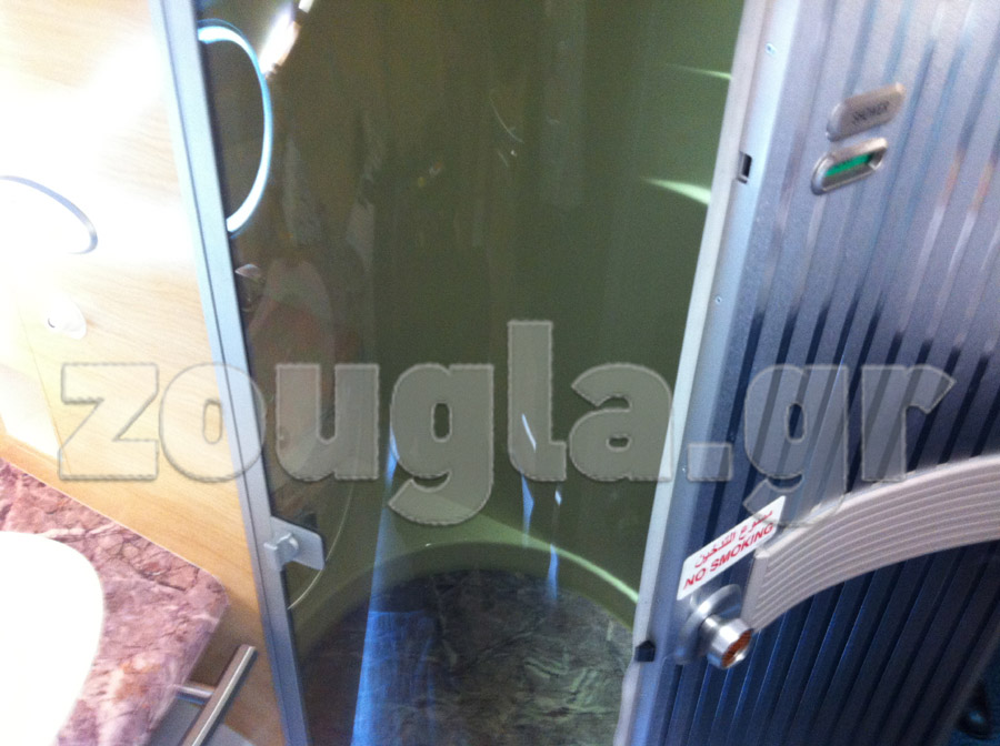 Οι διάδρομοι στον… ισόγειο είναι ατελείωτοι ενώ ανεβαίνοντας με τα σκαλιά (!) στον πιο πάνω όροφο αντικρίζεις το.. μπαρ! Συνεχίζεις και εντυπωσιάζεσαι με τις διακεκριμένες θέσεις που παρέχουν πολλές ανέσεις στους επιβάτες ενώ τα καθίσματα έχουν τη δυνατότητα να μεταμορφωθούν σε κρεβάτια μήκους 2 μέτρων. Η μεγάλη έκπληξη έρχεται αμέσως μετά και συγκεκριμένα στις 14 διακεκριμένες θέσεις που θυμίζουν μίνι σουίτες με τον κάθ’ ένα επιβάτη να μην έχει επαφή με τον άλλο. Εδώ οι επιβάτες νοιώθουν βασιλιάδες ενώ η δυνατότητα να κάνεις ακόμα και.. . μπάνιο σε συνδυασμό με shower spa (για 5 λεπτά) πίνοντας το ποτό σου είναι κάτι που δεν συναντάς στα αεροπλάνα ης γραμμής.