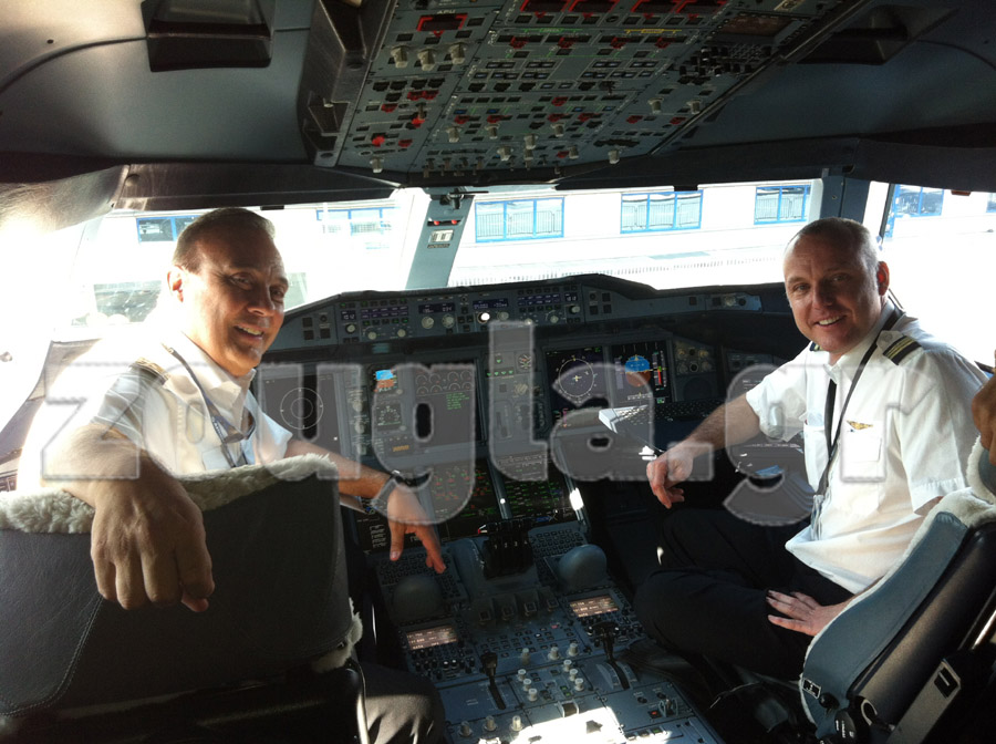 Κατεβαίνοντας τα σκαλιά από το εμπρός τμήμα του αεροσκάφους πέφτεις στο πιλοτήριο το οποίο σε ζαλίζει με τα εκατοντάδες κουμπάκια. Αναρωτιέσαι πώς είναι δυνατόν να πιλοτάρουν αυτό το «τέρας» αλλά η απάντηση του πιλότου ότι είναι πολύ… εύκολο και έχει καλό feeling σε προσγειώνει στην σύγχρονη πραγματικότητα και το γεγονός ότι ένα τόσο εντυπωσιακό και απίστευτα ογκώδες αεροσκάφος δεν θα μπορούσε παρά να είναι και εύκολο στην οδήγηση…