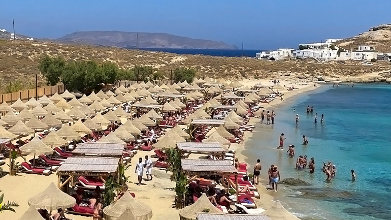 Όπως ήταν φυσικό δεν υπήρχε χώρος στην παραλία ούτε για να απλώσει κάποιος πετσέτα…. χεριών. Αστυνομικοί από την Υποδιεύθυνση Μυκόνου έκαναν έλεγχο στο εστιατόριο της ξενοδοχειακής μονάδας αλλά δεν θα μπορούσαν να μην δουν και τα χίλια κατειλημμένα τετραγωνικά της παραλίας.