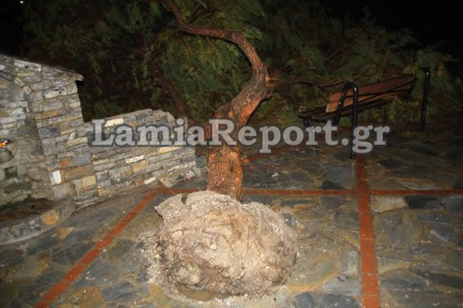 (Το δέντρο ξεριζώθηκε από τον δυνατό αέρα στην παραλία της Γλύφας στην ανατολική Φθιώτιδα)