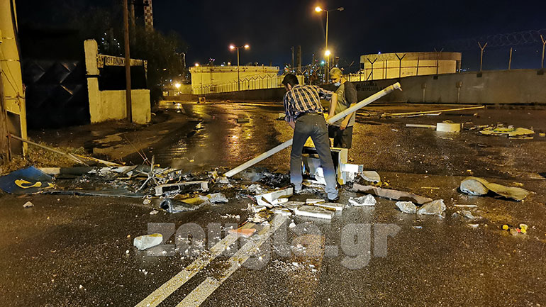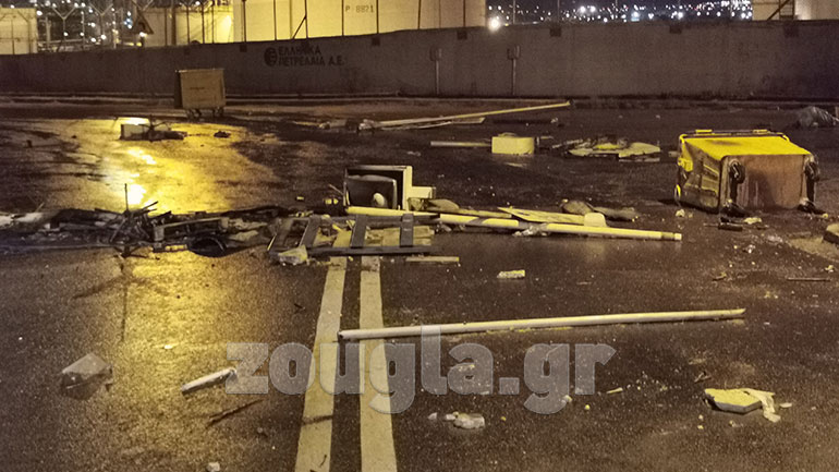Δείτε φωτογραφίες και βίντεο από καταστροφές σε οδοφράγματα που άφησαν πίσω τους τα επεισόδια στην περιοχή του Σκαραμαγκά, και από τη διαδικασία του καθαρισμού των δρόμων:
