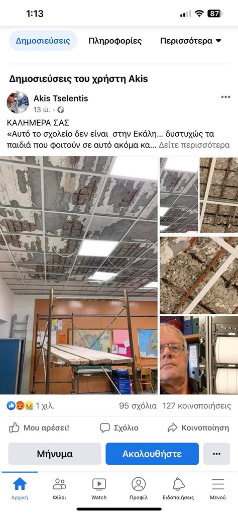 «Όλοι γνωρίζετε τον αγώνα που κάνω 10 χρόνια τώρα για ασφαλή σχολεία σε όλη την Ελλάδα. Δεν είναι ούτε 10 ούτε 20 είναι εκατοντάδες. Ήμαστε τυχεροί που ακόμα δεν έχουμε θρηνήσει κανένα παιδάκι κατά την διάρκεια κάποιου σεισμού.
