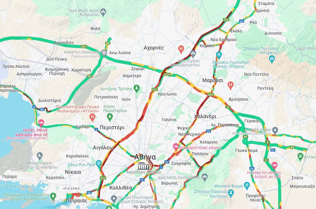 Παράλληλα, παρόμοια είναι η εικόνα και στην Εθνική Οδό Αθηνών – Λαμίας στην κάθοδο αλλά και στην Κηφισίας και στα δύο ρεύματα.