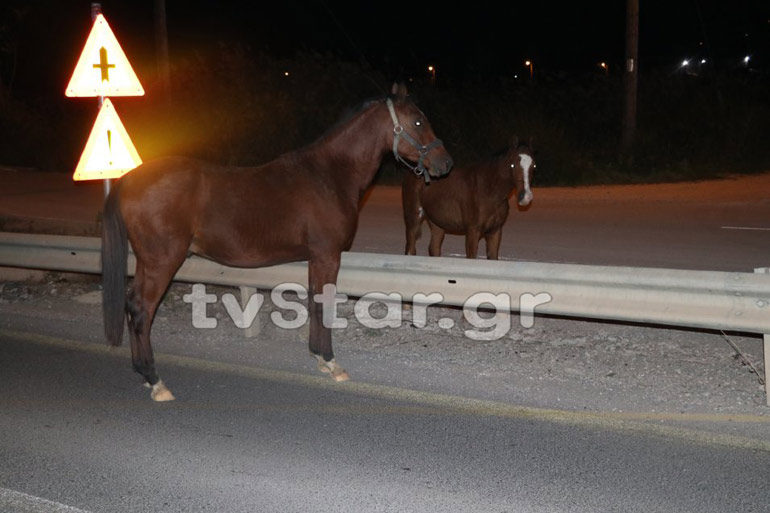 Χρειάστηκαν περίπου 20 λεπτά προκειμένου με τη βοήθεια και των οδηγών το άλογο να απομακρυνθεί από το οδόστρωμα και να αποκατασταθεί η κυκλοφορία των οχημάτων.