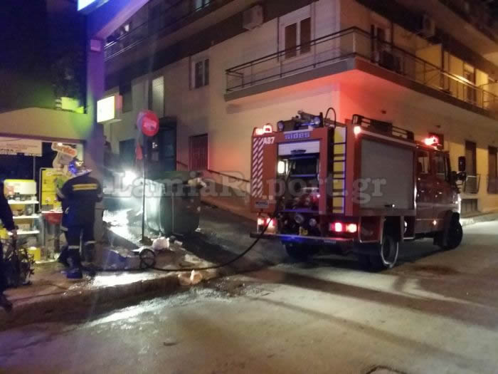 Αναστάτωση προκλήθηκε στο κέντρο της Λαμίας, το βράδυ της Δευτέρας, όταν κάτω από άγνωστες συνθήκες ένας κάδος απορριμμάτων τυλίχθηκε στις φλόγες.
