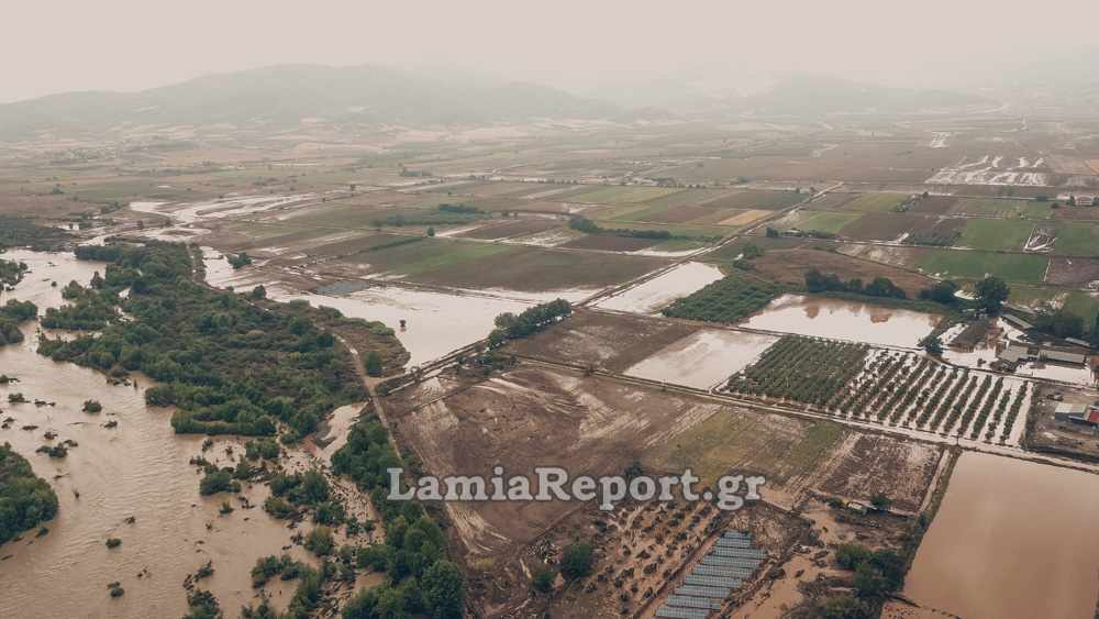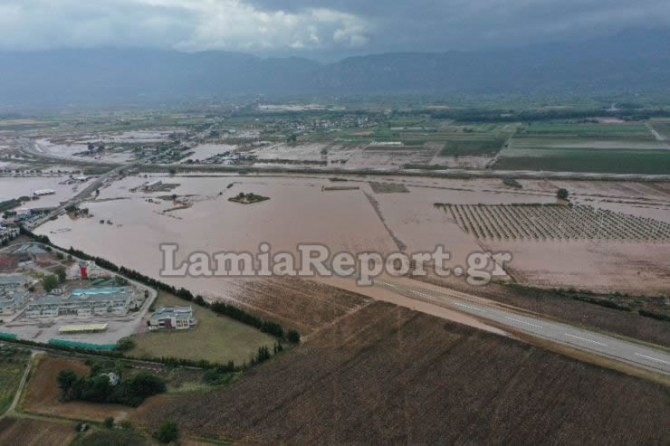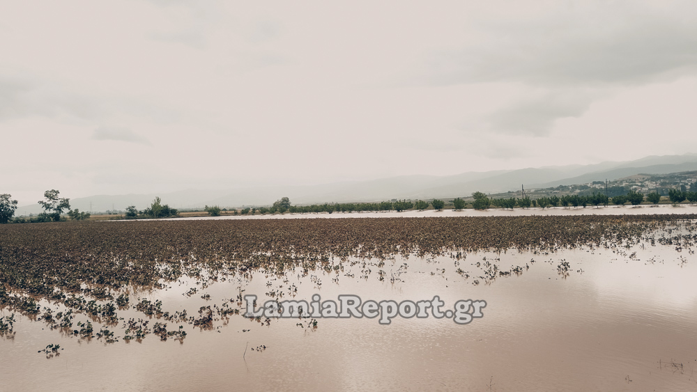 Σε μια απέραντη λίμνη έχει μετατραπεί ο κάμπος του Σπερχειού έξω από τη Λαμία, έπειτα από τα έντονα καιρικά φαινόμενα που εκδηλώθηκαν με τον κυκλώνα «Ιανό».