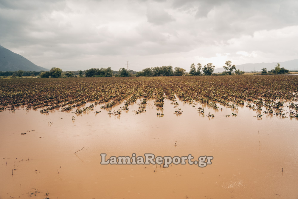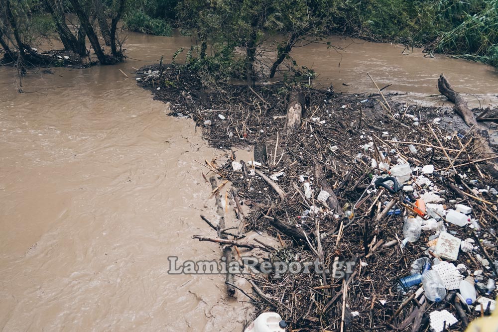 Το νερό που έπεσε από το πρωί της Παρασκευής και μέχρι τα μεσάνυχτα, «φούσκωσε» το ποτάμι και πλημμύρισε σχεδόν τα πάντα στη νότια Λαμία.