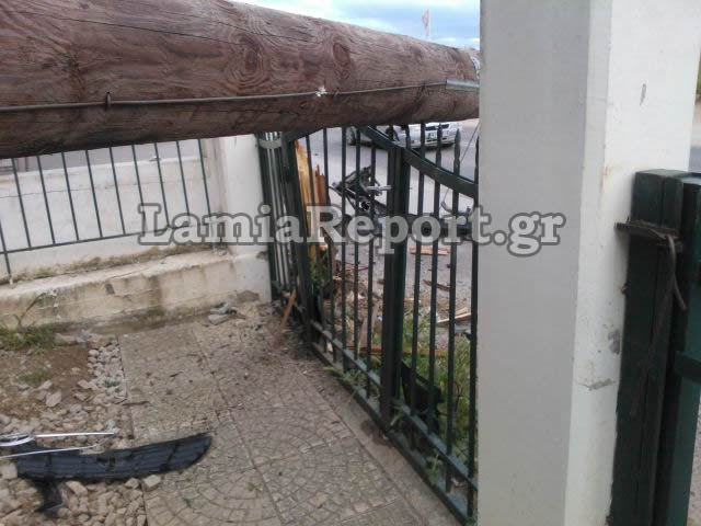 Το αυτοκίνητο έκοψε την κολόνα της ΔΕΗ, χτύπησε στη μάντρα και στη συνέχεια κατάληξε στη μέση του δρόμου. Η κολόνα της ΔΕΗ κόπηκε στα δυο και καταπλάκωσε άλλο αυτοκίνητο που ήταν μέσα σε αυλή σπιτιού.