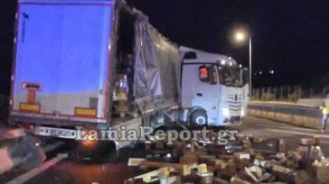 Ο οδηγός του οχήματος, για άγνωστη αιτία έχασε τον έλεγχο και προσέκρουσε στο διάζωμα, με αποτέλεσμα η νταλίκα να διπλώσει στα δύο, να πεταχτεί στο δρόμο το μεγαλύτερο μέρος του φορτίου και να κινδυνεύσει ο οδηγός.