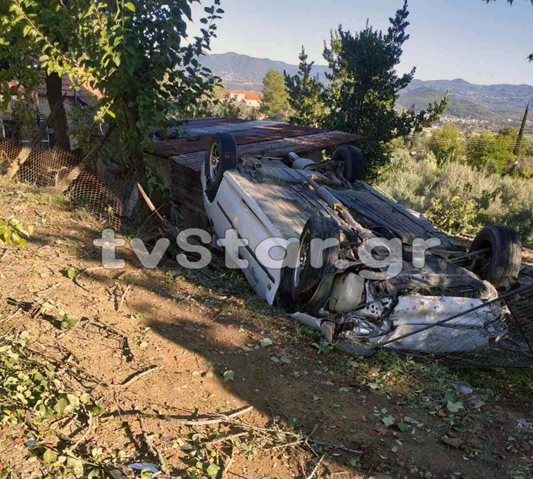 Το αυτοκίνητο βγήκε εκτός δρόμου και κατέληξε τουμπαρισμένο στην αυλή σπιτιού.