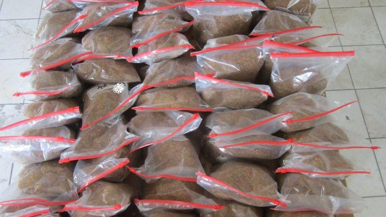 • 94 νάιλον συσκευασίες, οι οποίες περιείχαν ποσότητα αδασμολόγητου καπνού, συνολικού μικτού βάρους 47 κιλών