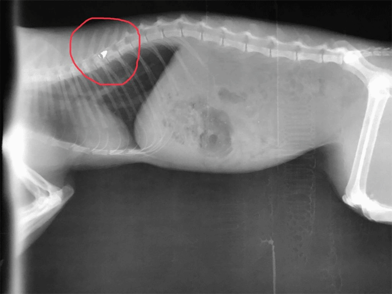 Το άτυχο ζώο δέχθηκε τη σφαίρα στην σπονδυλική στήλη, όπως δείχνουν και οι ακτινογραφίες που κατατέθηκαν στο Δικαστήριο. Ο παράλυτος πλέον γάτος, φιλοξενείται προσωρινά, στο σπίτι του ανθρώπου που βρέθηκε μπροστά στο συμβάν ενώ άγνωστο παραμένει το μέλλον του, αφού θα χρειαστεί χειρουργείο.