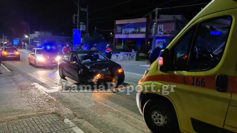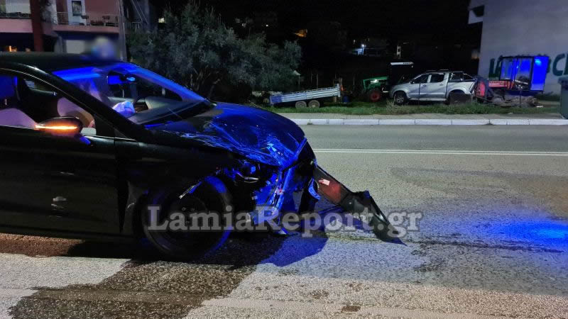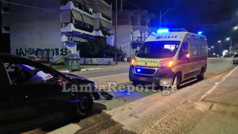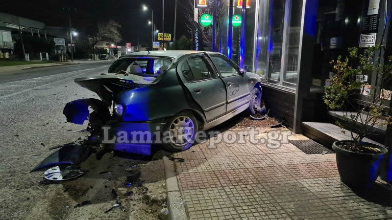Ο οδηγός ενός αυτοκινήτου που κινούνταν προς Λαμία έπεσε με ταχύτητα πάνω σε ένα παρκαρισμένο αυτοκίνητο, το οποίο το έριξε πάνω στο πεζοδρόμιο και σταμάτησε μπροστά στη βιτρίνα της καφετέριας.