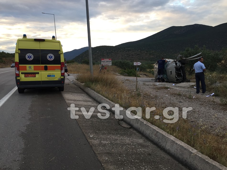 Από τους αστυνομικούς και τους διασώστες του ΕΚΑΒ, ο οδηγός βρέθηκε αρκετά μέτρα μακριά από το όχημα του.