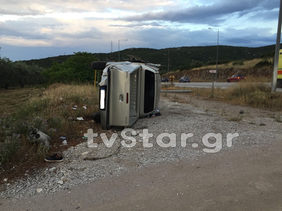 Αφού προσέκρουσε αρχικά σε διαφημιστική πινακίδα και στη συνέχεια σε κολόνα φωτισμού, το τετρακίνητο όχημα ντελαπάρισε.