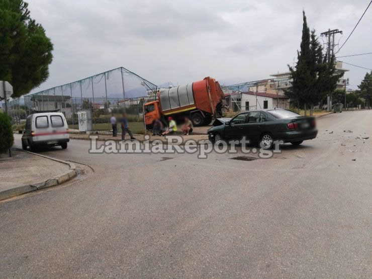 Τροχαίο ατύχημα σημειώθηκε το πρωί στη Λαμία, στη συμβολή των οδών Π. Ευθυμιάδη και Κατσούδα, μεταξύ ενός ΙΧ και ενός απορριμματοφόρου.
