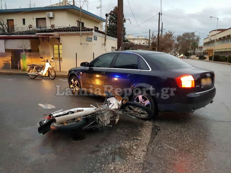 Σύγκρουση Ι.Χ. με μηχανάκι σημειώθηκε το απόγευμα της Τρίτης επί της οδού Καβάφη στη Νέα Άμπλιανη Λαμίας.