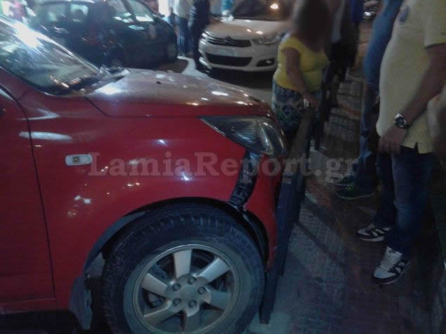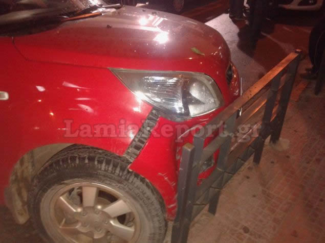 Αποτέλεσμα ήταν το αυτοκίνητο να «διπλώσει» και να «σφηνωθεί» ανάμεσα σε ένα παρκαρισμένο και τα κάγκελα του πεζοδρομίου.