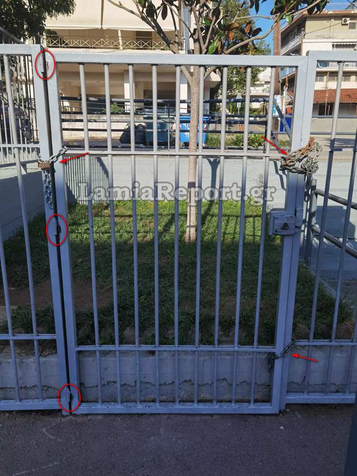 Όπως γράφει το LamiaReport, βγαίνοντας έξω ο Διευθυντής με τους γονείς διαπίστωσαν τη φθορά στα κάγκελα, που ουσιαστικά επρόκειτο για παλαιά βοηθητική πόρτα που έχει καταργηθεί από πολλά χρόνια αφού πίσω της έχουν στηθεί παρτέρια και είχε ξεκολλήσει από τους μεντεσέδες.