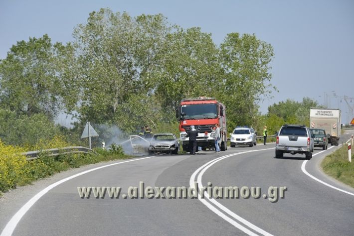 Στις φλόγες τυλίχτηκε κάτω από αδιευκρίνιστες συνθήκες Ι.Χ. που βρισκόταν εν κινήσει στην Παλαιά Εθνική Οδό Αλεξάνδρειας – Κατερίνης, μετά τη γέφυρα του Αλιάκμονα.