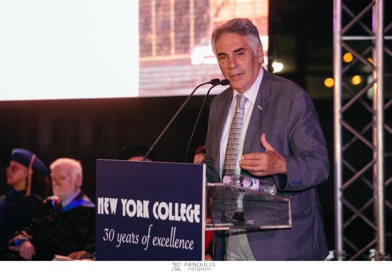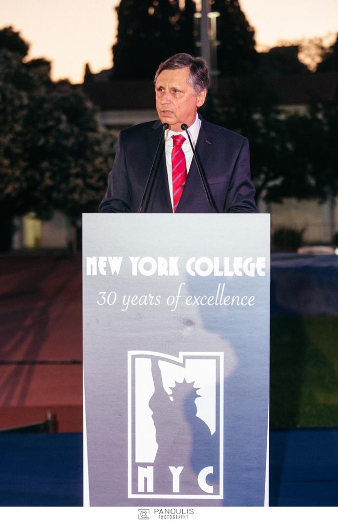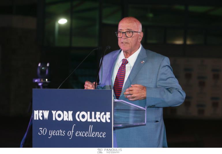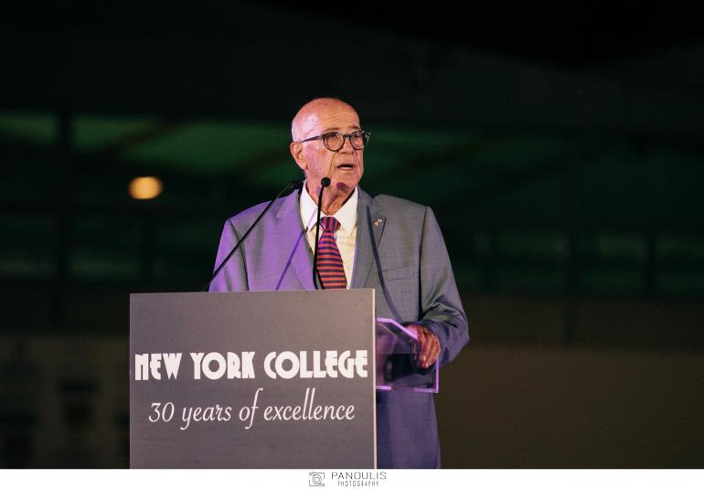 Από την πλευρά του, ο Πρόεδρος και Ιδρυτής του Εκπαιδευτικού Ομίλου New York College, κ. Ηλίας Φούτσης, αφού ευχήθηκε στους αποφοίτους καλή επαγγελματική σταδιοδρομία, αναφέρθηκε στο γεγονός πως η τελετή αποφοίτησης μπορεί να σηματοδοτεί το τέλος μιας διαδρομής αλλά όχι απαραίτητα και το τέλος μιας πορείας.