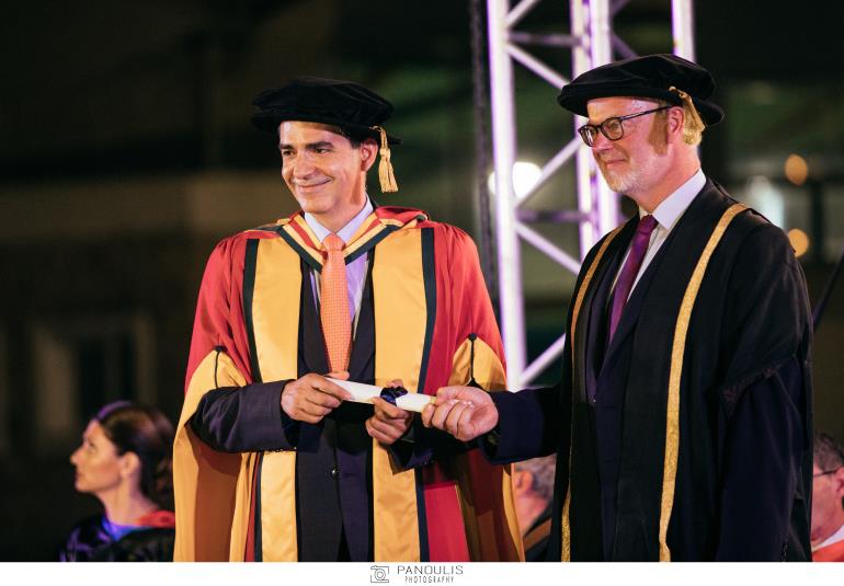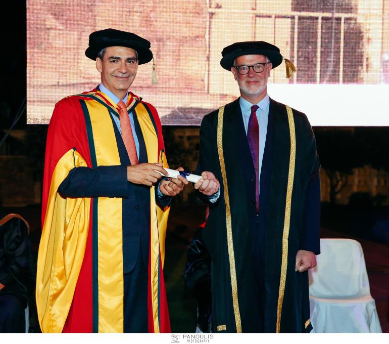 Τιμητικό Διδακτορικό Τίτλο για το επιστημονικό του έργο από το Πανεπιστήμιο του Bolton έλαβε από τον Κόμη του St. Andrews κατά τη διάρκεια της εκδήλωσης, o Καθηγητής Άγγελος Συρίγος.