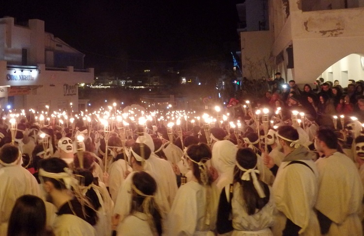 Οι λαμπαδηφόροι διασχίζοντας την παραλία της Νάξου φτάνουν στο ναό του Απόλλωνα (Πορτάρα) και στη συνέχεια στην πλατεία της παραλίας καίνε το “κακό”. Ακολουθεί γλέντι με ρακόμελο και παραδοσιακή μουσική.