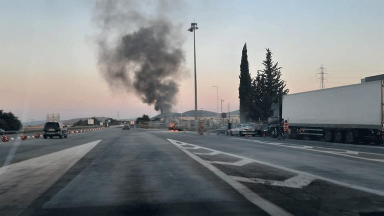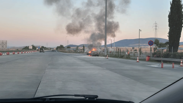 Ένα αυτοκίνητο τυλίχθηκε στις φλόγες το απόγευμα της Κυριακής, λίγο μετά τα διόδια του Μοσχοχωρίου, με κατεύθυνση προς την Αθήνα.