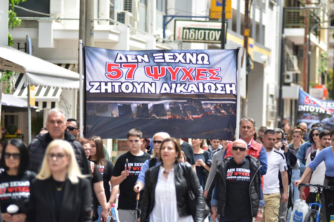 Οι συγγενείς των θυμάτων, αλλά και πολίτες της Λάρισας, κρατώντας πανό στο οποίο αναγραφόταν «Δεν ξεχνώ – 57 ψυχές ζητούν δικαίωση» εξέφρασαν για ακόμη μια φορά το αίτημά τους να αποκαλυφθούν όλα τα αίτια του δυστυχήματος και να αποδοθούν οι ευθύνες όσο ψηλά και αν βρίσκονται.