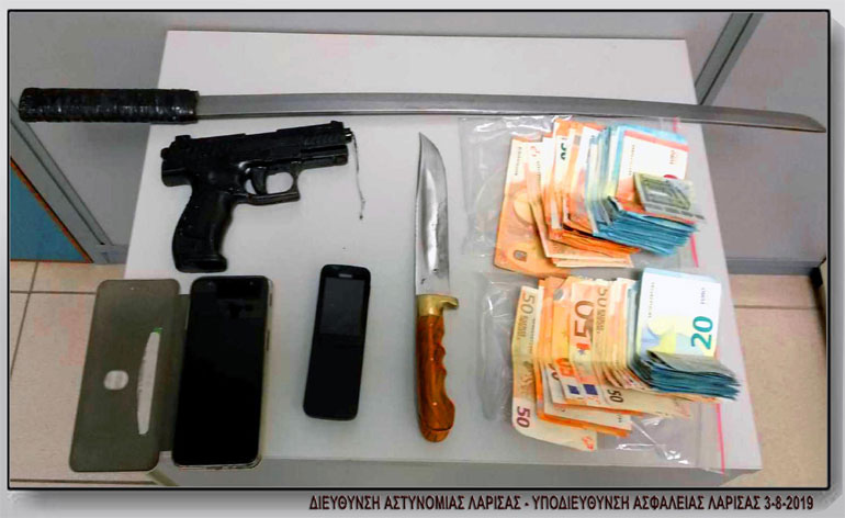 Σε έρευνες που πραγματοποιήθηκαν στην οικία και αγροτεμάχιο του 50χρονου και στην οικία του 35χρονου, αλλά και σε έρευνες που διενεργήθηκαν στα προαναφερόμενα οχήματα, βρέθηκαν συνολικά και κατασχέθηκαν, διάφορα είδη που χρησιμοποιήθηκαν από τον 35χρονο για κάλυψη των χαρακτηριστικών του (περούκα, ψεύτικα γένια, γυαλιά ηλίου και γάντια), ένα πιστόλι, τύπου replica, μία σπάθα, ένα μαχαίρι, δύο κινητά τηλέφωνα και το συνολικό χρηματικό ποσό των 2.380 ευρώ.