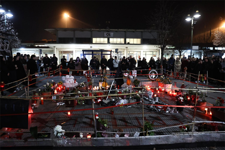 Μάλιστα οι παρευρισκόμενοι άναψαν τα κεριά στις 23.22 την ώρα που έγινε η σύγκρουση των δύο αμαξοστοιχιών στα Τέμπη.