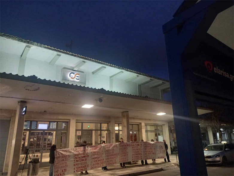 Φοιτητές της Ιατρικής Λάρισας απέκλεισαν τις σιδηροδρομικές γραμμές στον σταθμό του ΟΣΕ στη Λάρισα, για 57 λεπτά, φώναξαν τα ονόματα των θυμάτων και κάλεσαν τον κόσμο να συμμετέχει την Παρασκευή στην απεργιακή συγκέντρωση.