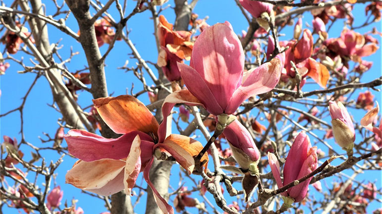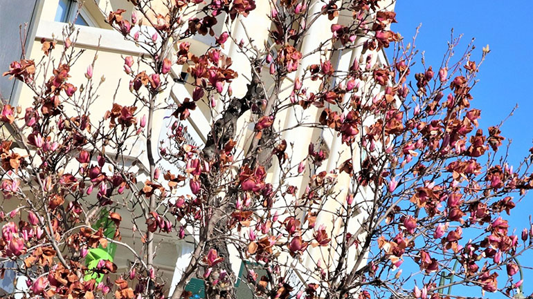 Το χιόνι, ο παγετός και οι χαμηλές θερμοκρασίες έκαψαν τις ανθισμένες μανόλιες που είχαν γίνει αντικείμενο θαυμασμού στο κέντρο της Λάρισας. Άλλωστε δεν ήταν και το πλέον συνηθισμένο φαινόμενο να έχουν αποκτήσει το ανοιξιάτικο χρώμα τους, μόλις στις αρχές του Φεβρουαρίου. Όμως, το χιόνι του Σαββατοκύριακου, όπως και ο παγετός που ακολούθησε, άφησαν τα σημάδια τους.