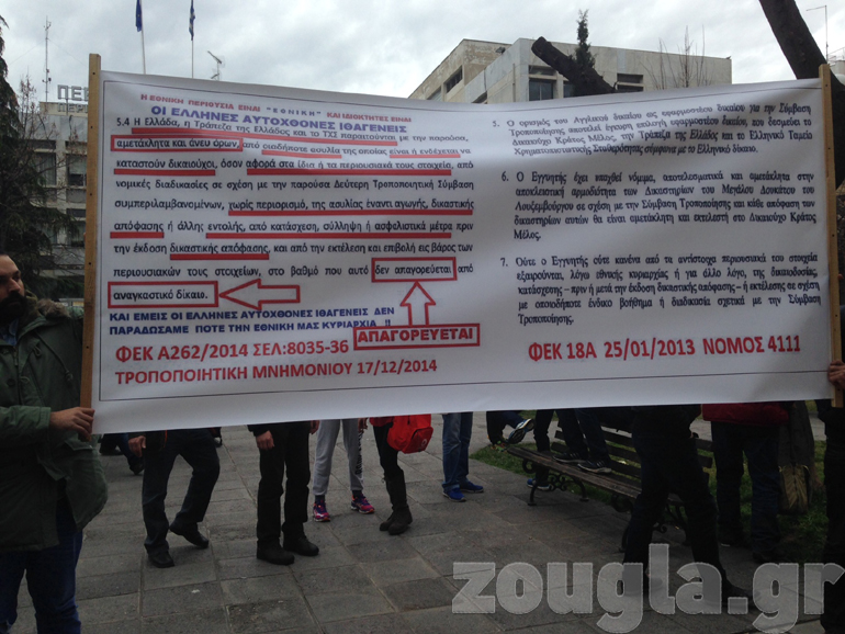 Περίπου 400 μέλη του πολιτικού φορέα «Ελλήνων Συνέλευσις» από διάφορες περιοχές της Βόρειας Ελλάδας συγκεντρώθηκαν μπροστά από το κτήριο της Περιφέρειας Θεσσαλίας, στο πλαίσιο των απεργιακών κινητοποιήσεων στη Λάρισα, και πραγματοποίησαν παρέμβαση, μοιράζοντας φυλλάδια και ενημερώνοντας τους περαστικούς για τους σκοπούς της κινητοποίησής τους.