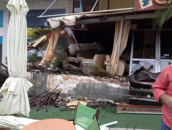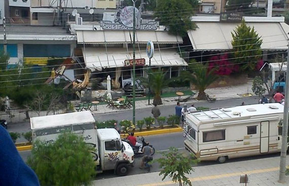 Το λεωφορείο έπεσε με ταχύτητα πάνω στο κατάστημά του, με αποτέλεσμα να προκληθούν σοβαρές υλικές ζημιές, καθώς κατέστρεψε την πρόσοψη του café, τα τραπεζοκαθίσματα, την ταμπέλα, τα διακοσμητικά και ό,τι άλλο βρήκε στο μπροστά του…