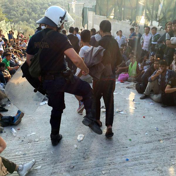 Τον γύρο του κόσμου μέσω των κοινωνικών δικτύων κάνουν τις τελευταίες ώρες οι φωτογραφίες ενός αστυνομικού που κλωτσάει πρόσφυγες στο Κέντρο Υποδοχής Μεταναστών στη Μοριά της Λέσβου.