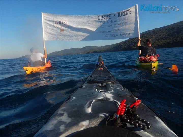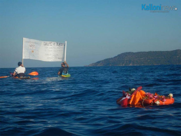 Το απόγευμα της Τετάρτης στη Συκαμιά τρεις ντόπιοι πήραν τα κανό τους και ύψωσαν ένα πανό συμβολικά προς τα απέναντι Τουρκικά παράλια, με τον μεγάλο τους προβληματισμό για τις αθώες ψυχές που χάνονται καθημερινά.