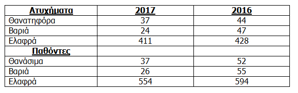 Ειδικότερα τα τροχαία και οι παθόντες είναι: