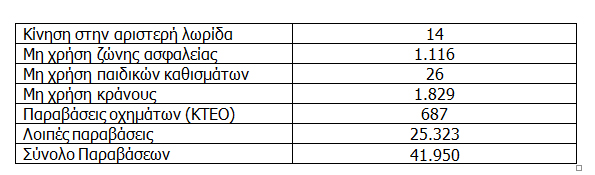 Συγκεκριμένα, συγκροτήθηκαν 6.265 συνεργεία τροχονομικών ελέγχων, πραγματοποιήθηκαν έλεγχοι σε 197.309 οχήματα και βεβαιώθηκαν συνολικά 41.950 παραβάσεις, ως ακολούθως: