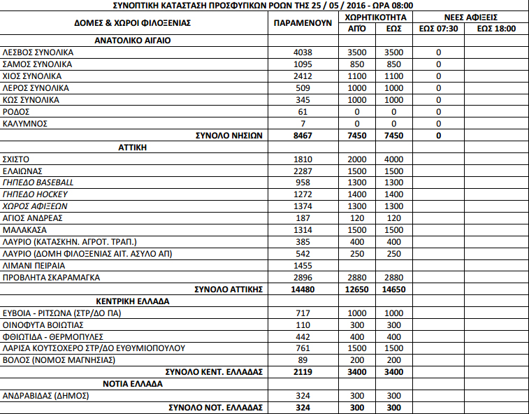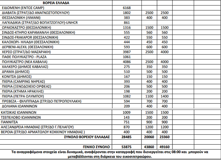 Συνολικά 53.875 πρόσφυγες και μετανάστες βρίσκονται σε διάφορες περιοχές της ελληνικής επικράτειας, σύμφωνα με την τελευταία καταμέτρηση του Συντονιστικού Οργάνου Διαχείρισης της προσφυγικής κρίσης.
