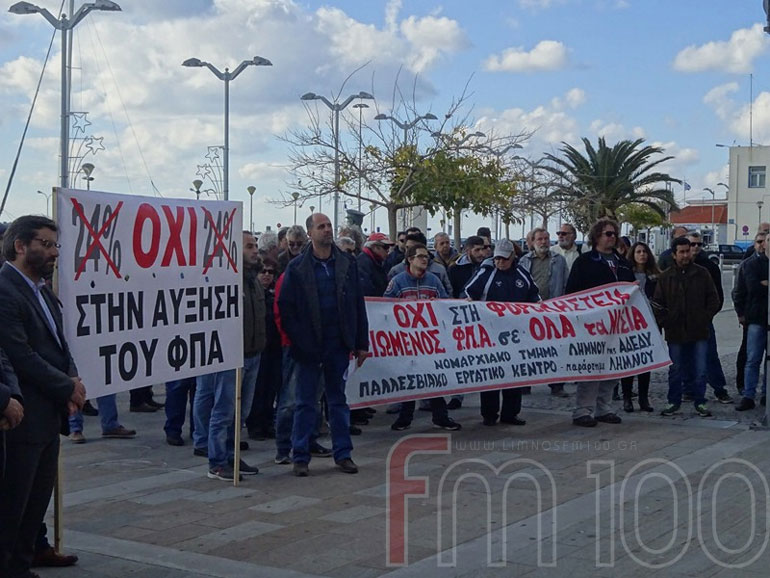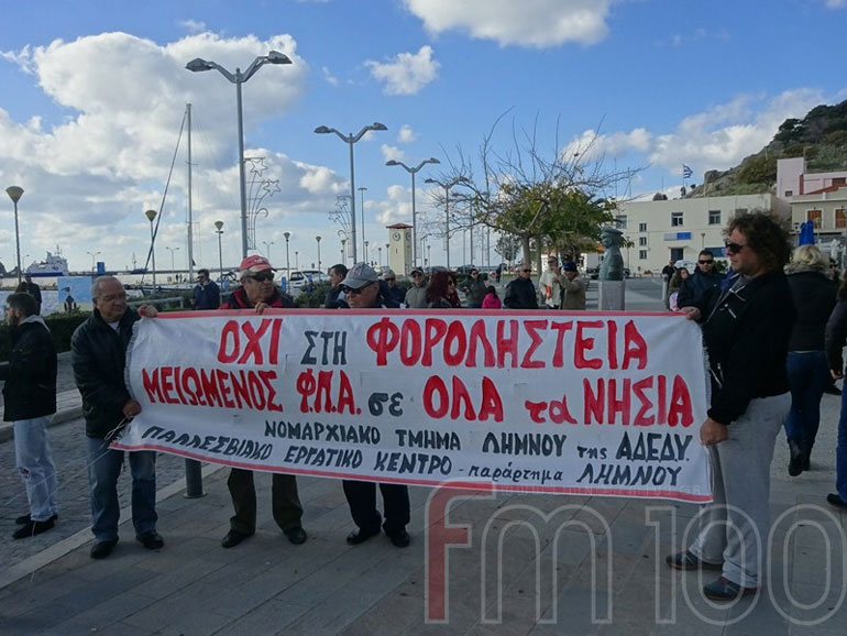 Με τη συμμετοχή του κόσμου να ξεπερνά κάθε προσδοκία και κλειστές όλες τις επιχειρήσεις και της υπηρεσίες του νησιού, η Λήμνος σήμερα βροντοφώναξε «ΟΧΙ» επικείμενη στην αύξηση του ΦΠΑ.