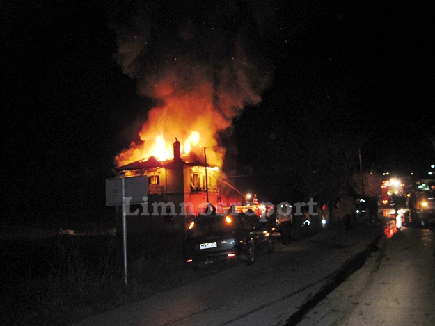 Μεγάλη πυρκαγιά ξέσπασε το βράδυ της Παρασκευής σε οικία στην περιοχή Πλατύ της Λήμνου.