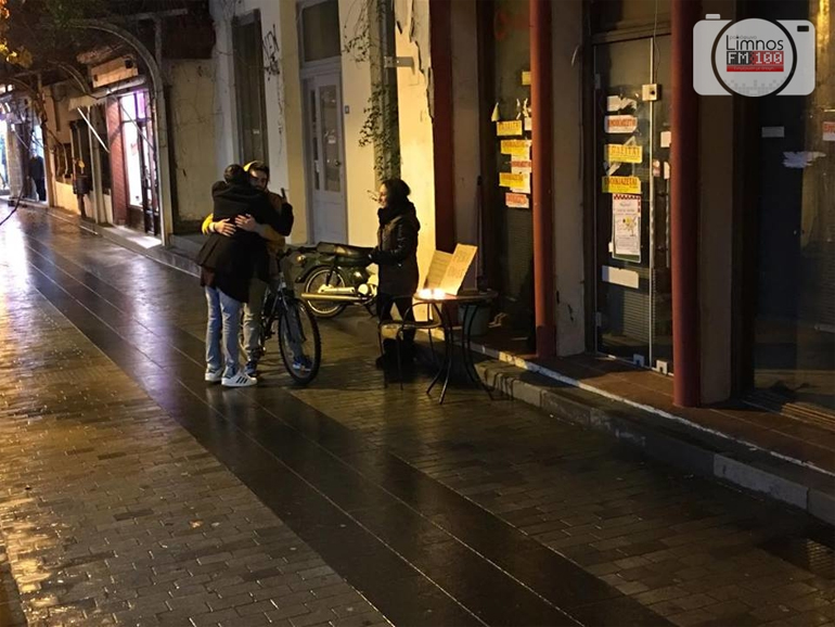 Φοιτητές του Πανεπιστημιακού Τμήματος Λήμνου αψήφησαν το κρύο που επικρατούσε το βράδυ της Πέμπτης, στάθηκαν στην κεντρική αγορά της Μύρινας και μοίρασαν… δωρεάν αγκαλιές σε κατοίκους και επισκέπτες.