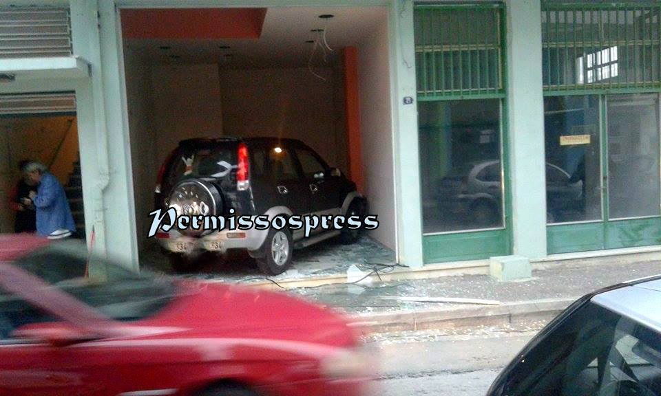 Ένα αυτοκίνητο, ενώ διέσχιζε την οδό Καραγιαννοπούλου, κάτω από άγνωστες συνθήκες, εισέβαλε, στην κυριολεξία, σε κατάστημα, σπάζοντας την τζαμαρία του.