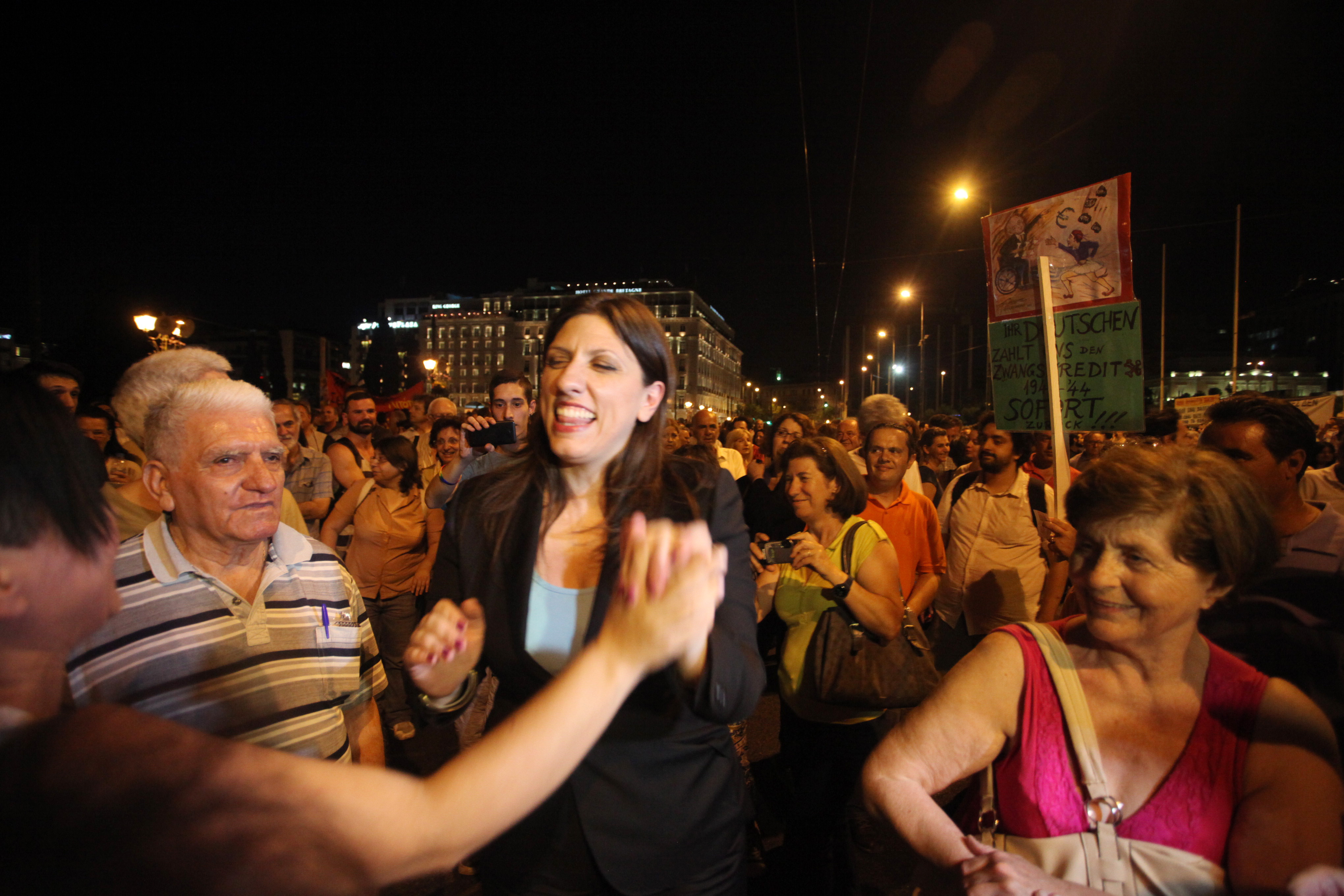 Το παρών στη συγκέντρωση έδωσε και η Πρόεδρος της Βουλής Ζωή Κωνσταντοπούλου, την οποία οι διαδηλωτές υποδέχτηκαν με θέρμη.